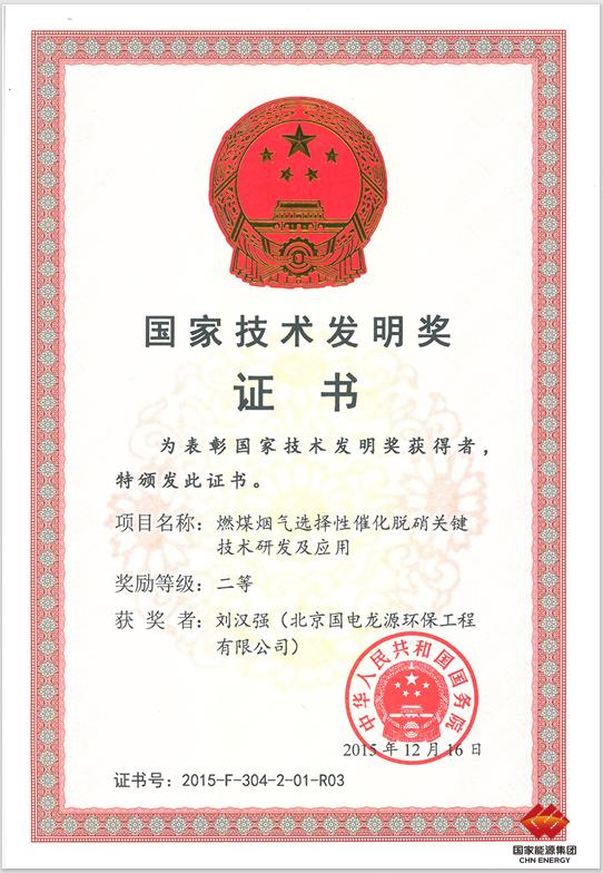 ÁúÔ´»·±£ÈÙ»ñ2015Äê¹ú¼ÒÊÖÒÕ·¢Ã÷½±¶þµÈ½±Ö¤Êé